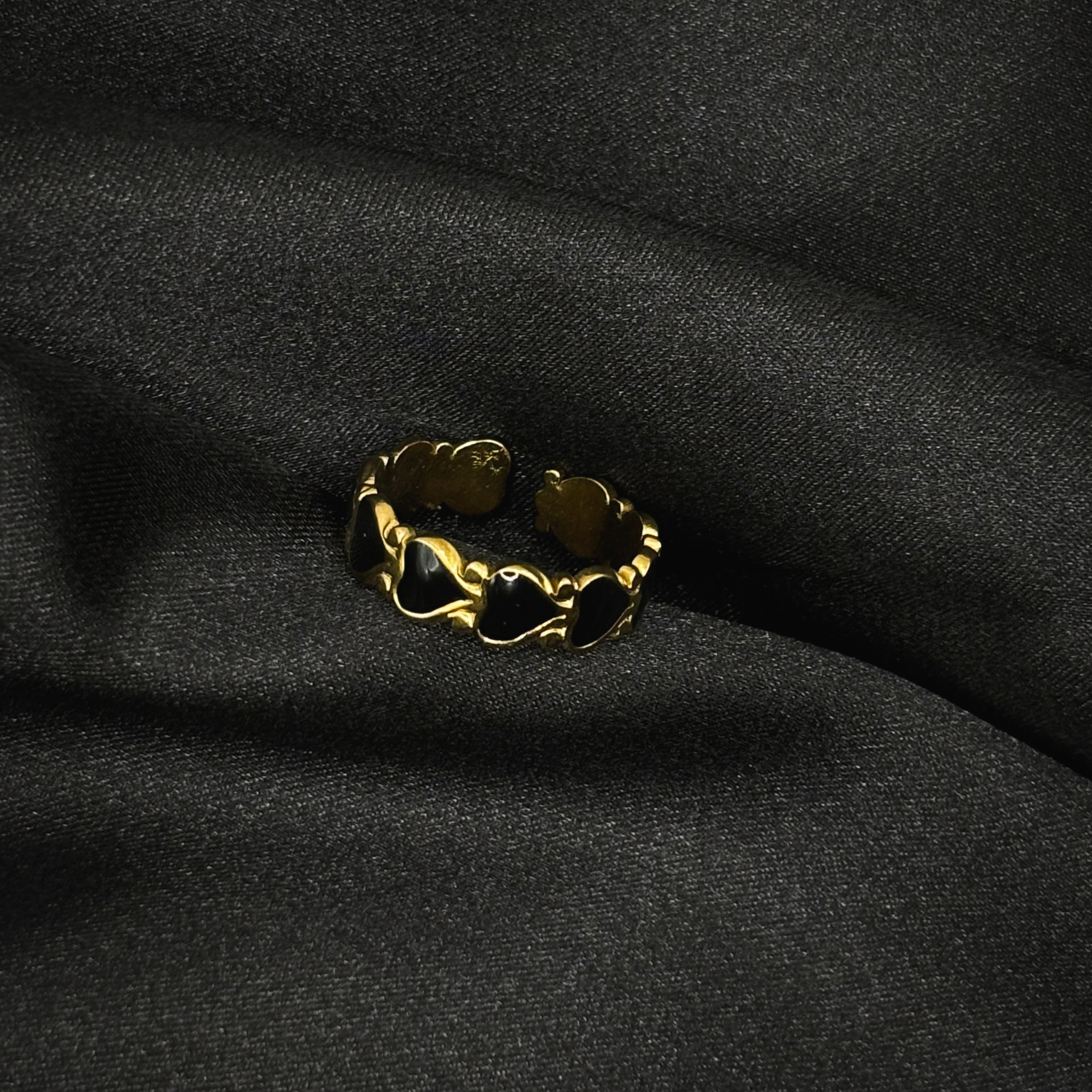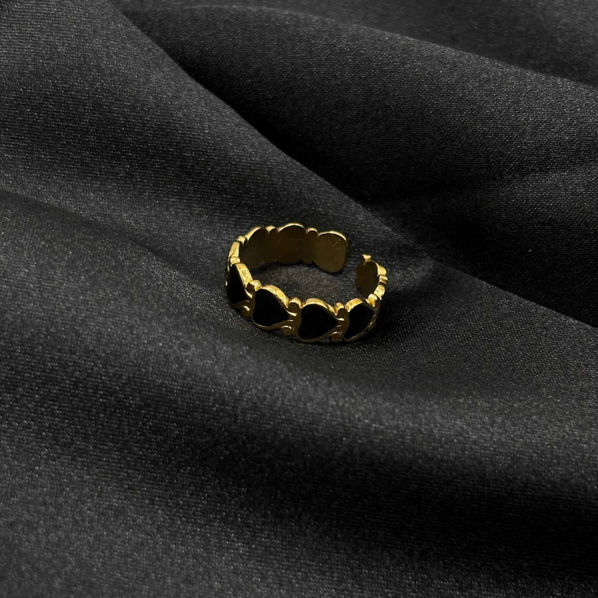 Bague plaquet cœur noir en acier inoxydable
