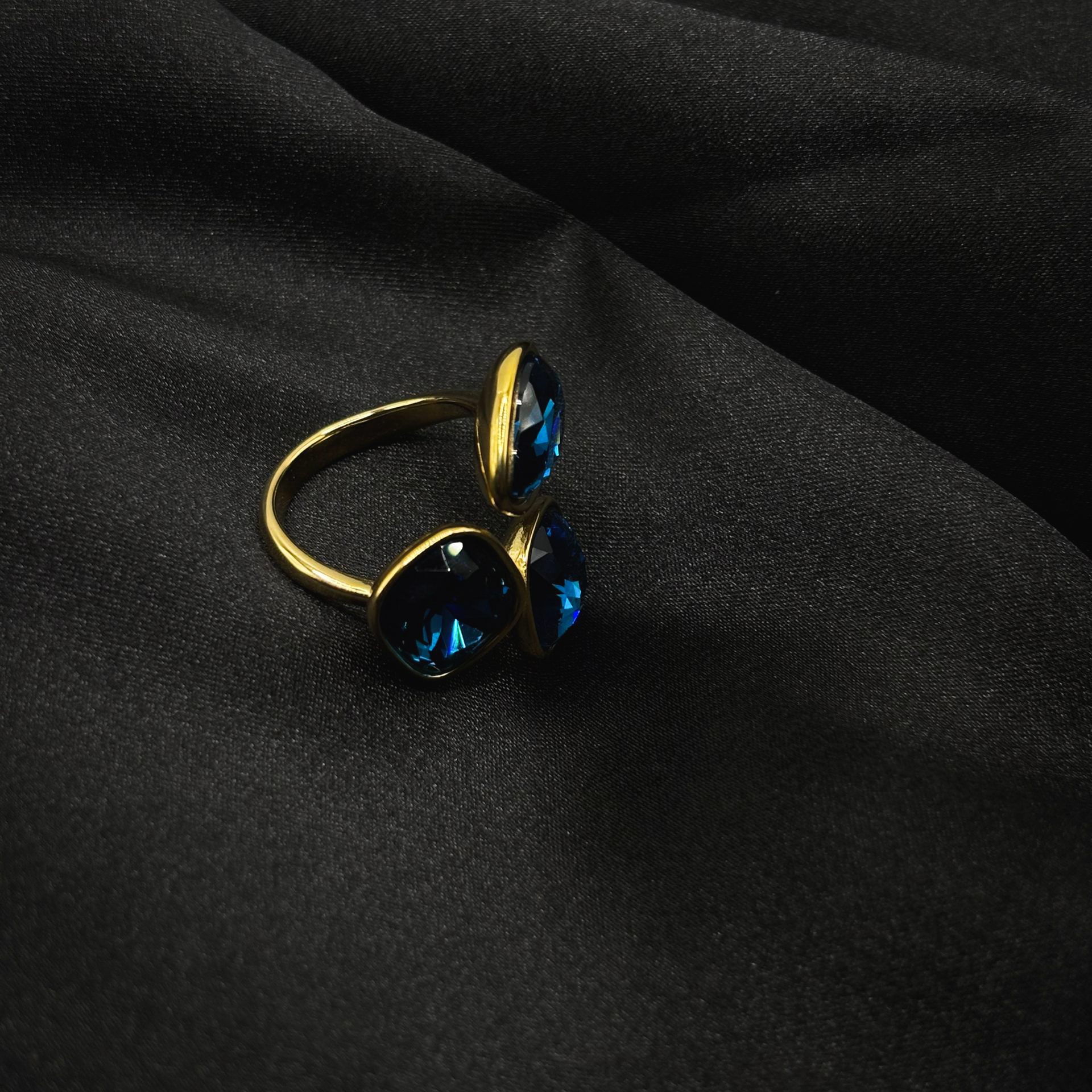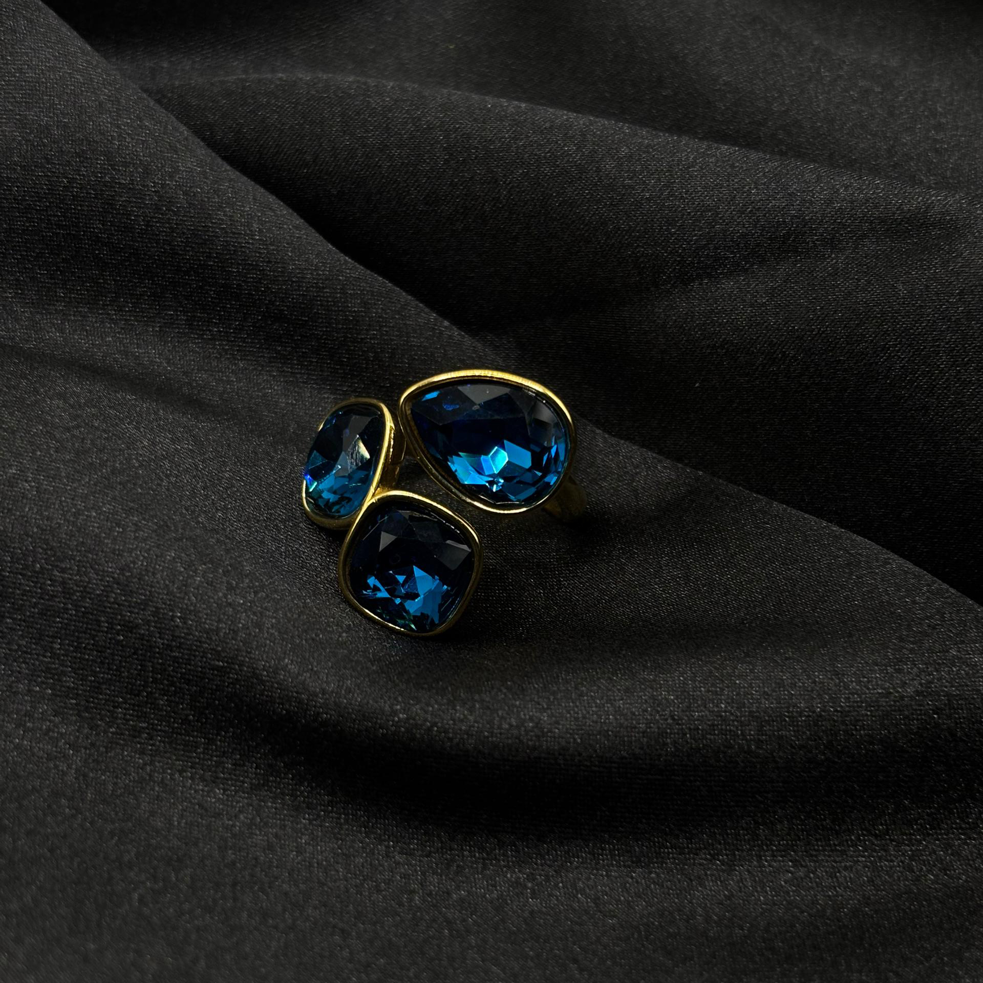 Bague plaquet or trio diamants bleu en acier inoxydable