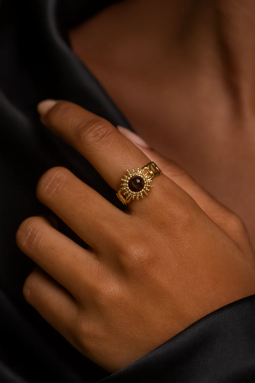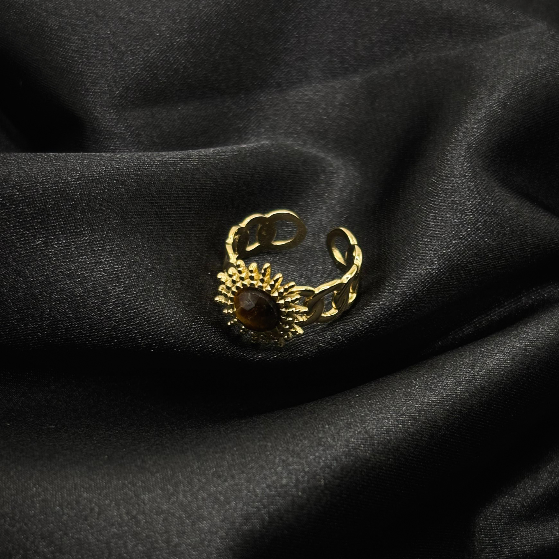 La bague soleil en acier inoxydable est un bijou raffiné qui capte l’éclat et la chaleur du soleil dans un design moderne et élégant.