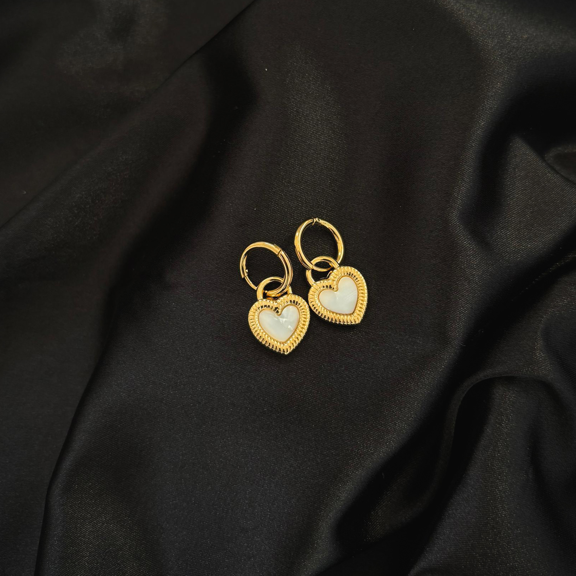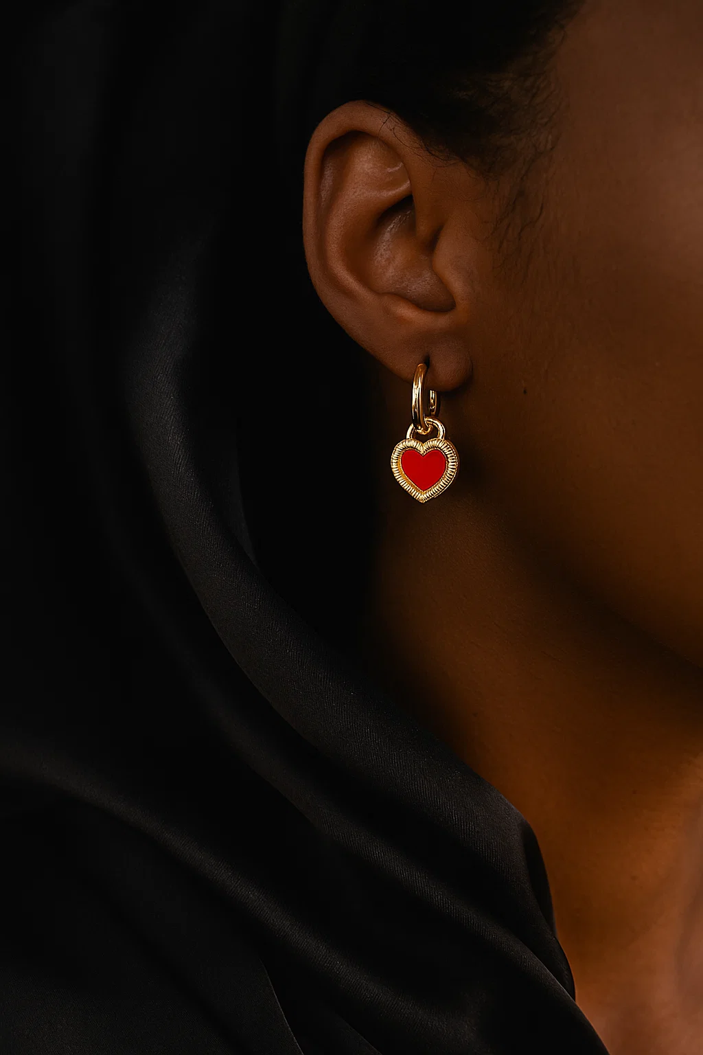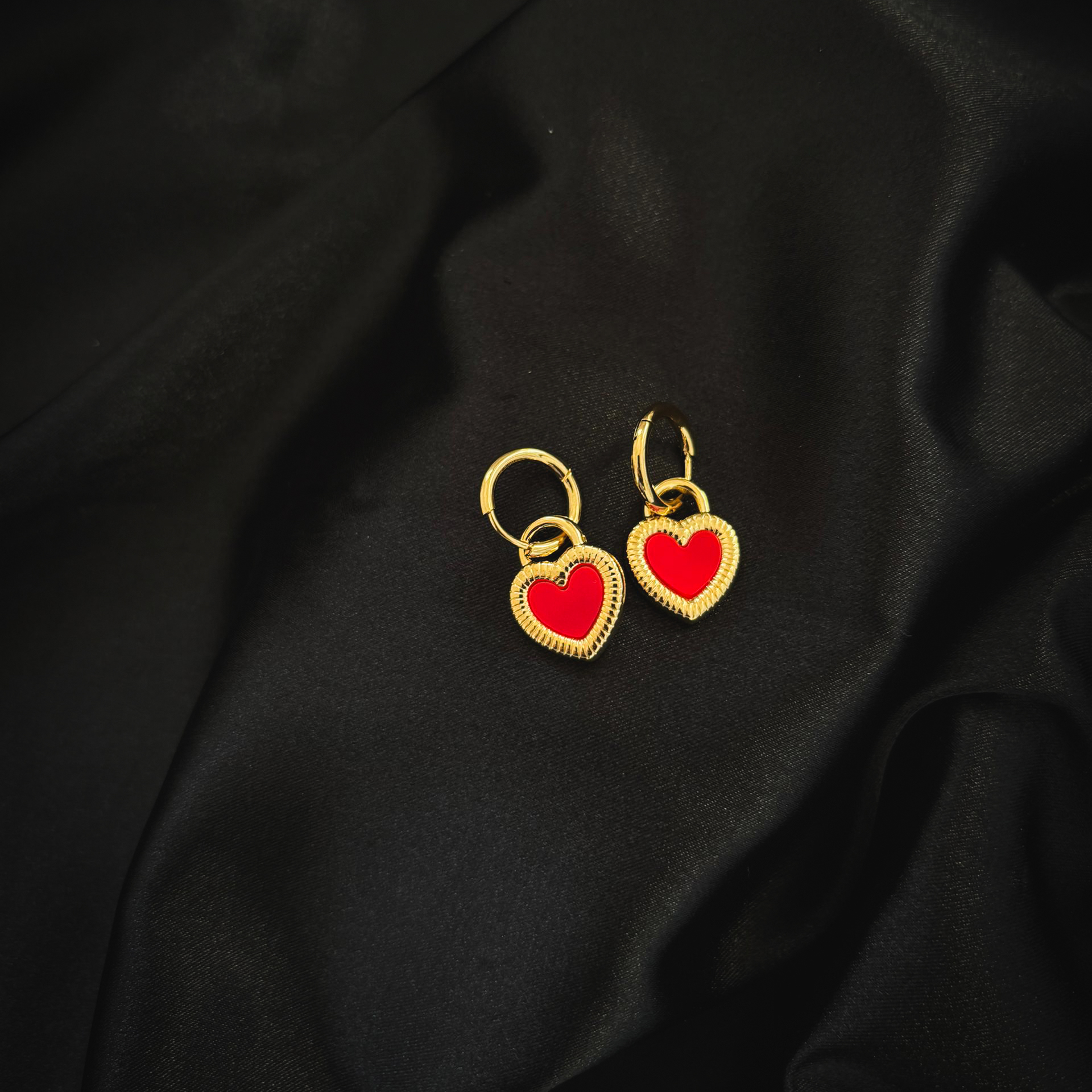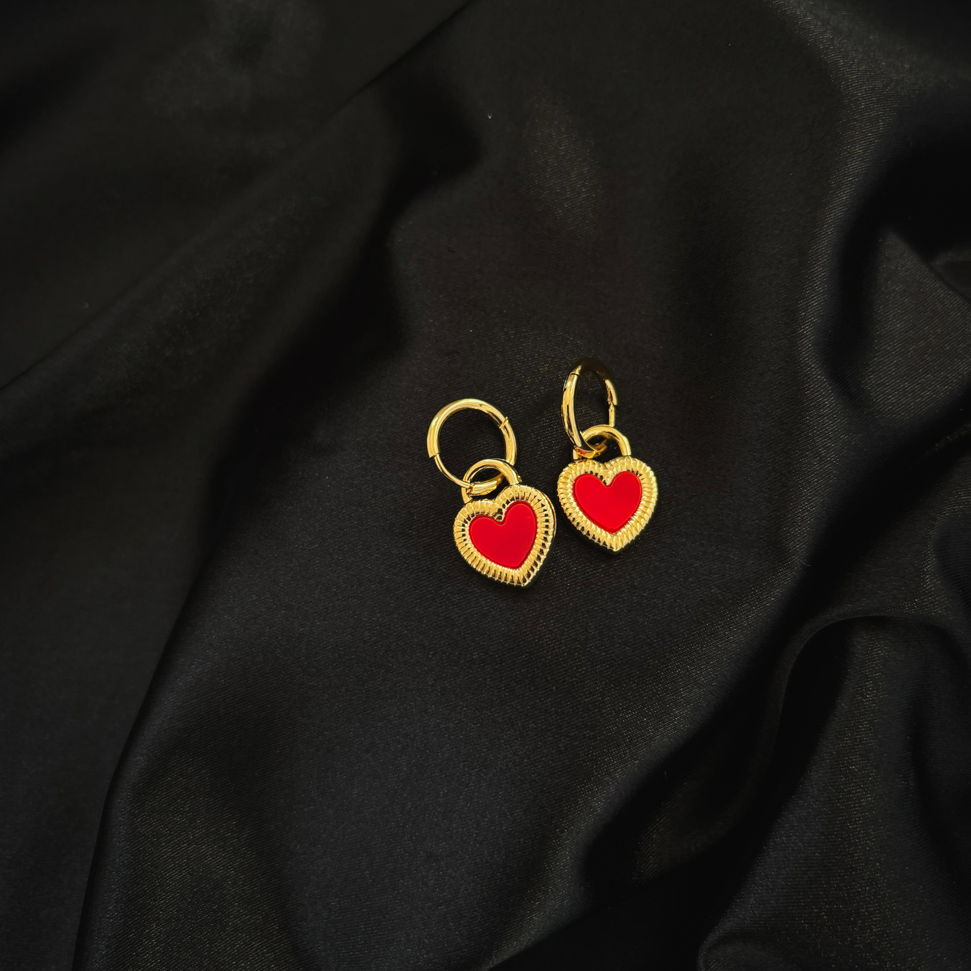 Boucles plaquet or coeur double face rouge – blanche en acier inoxydable
