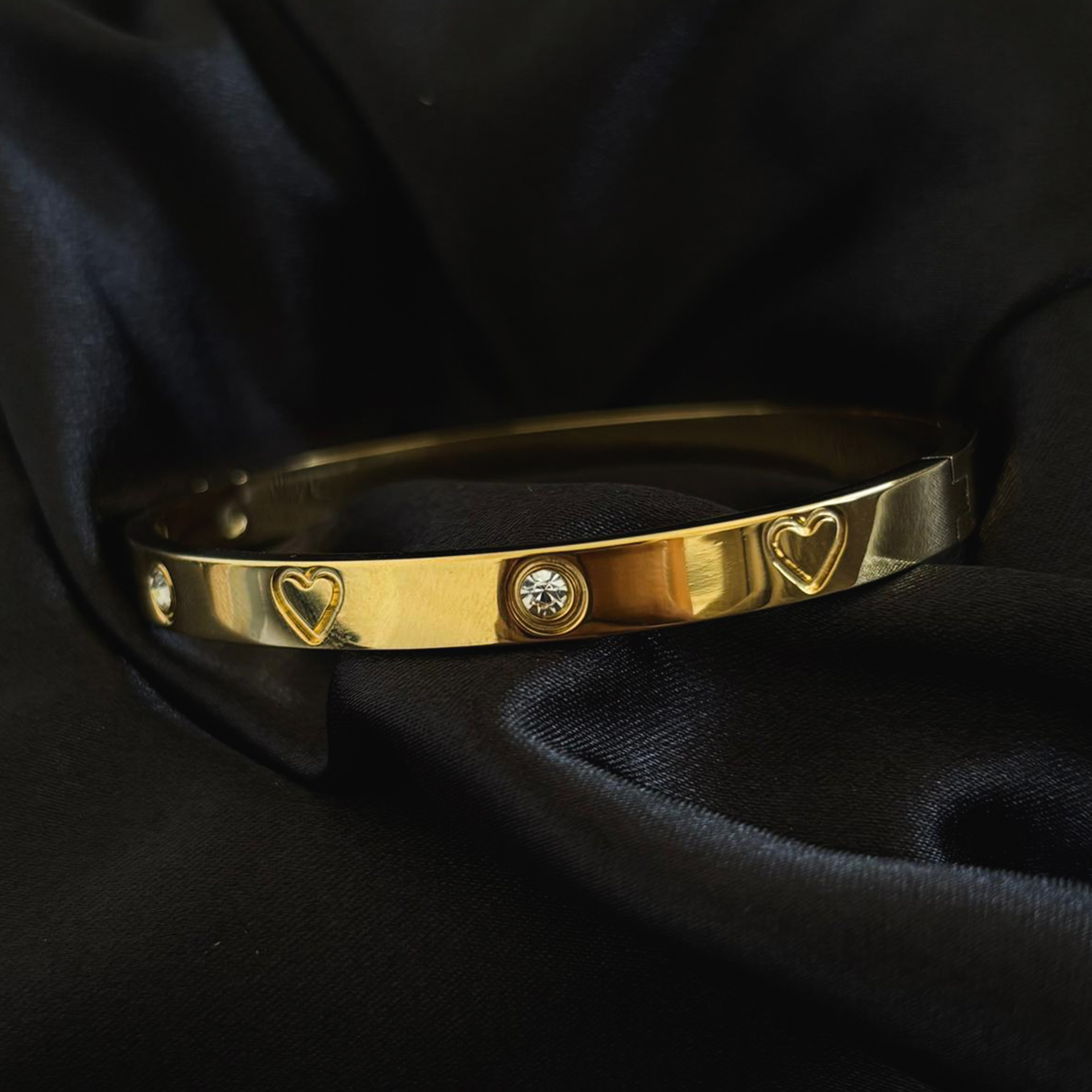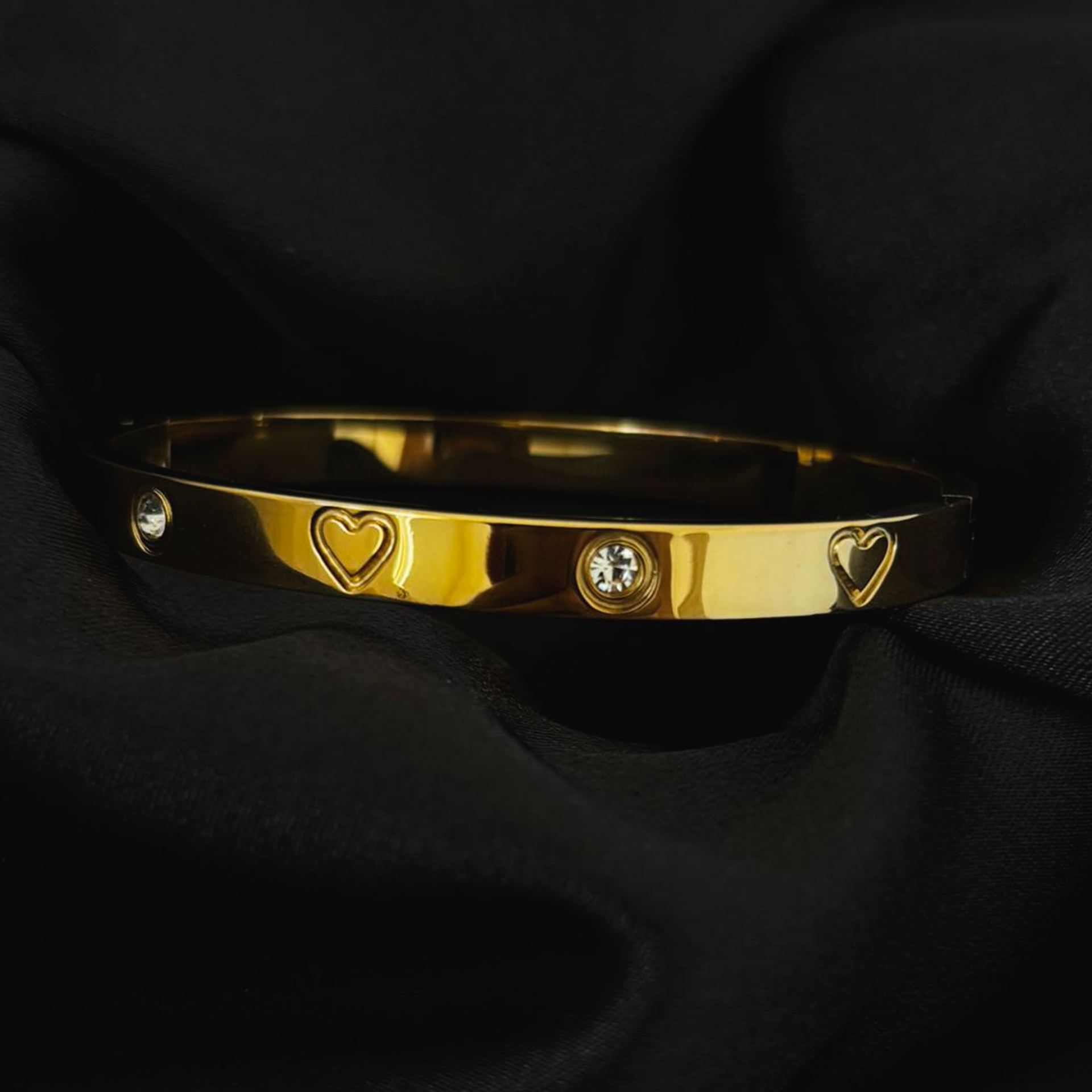 Un bracelet doré en acier inoxydable, sublimé de diamants colorés, pour une touche d’éclat moderne et raffinée.