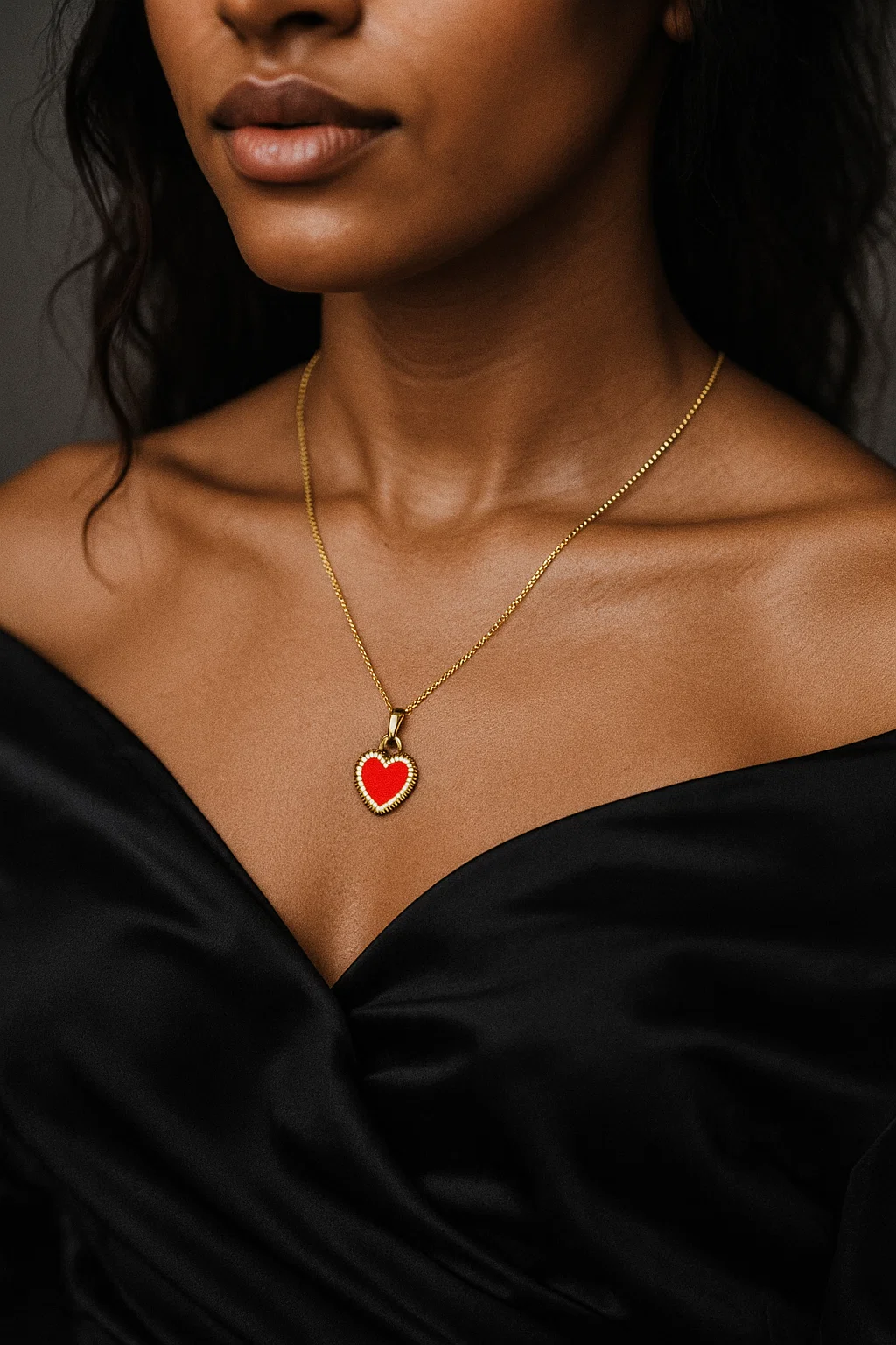 Chaîne à médaillon double face rouge blanc en acier inoxydable