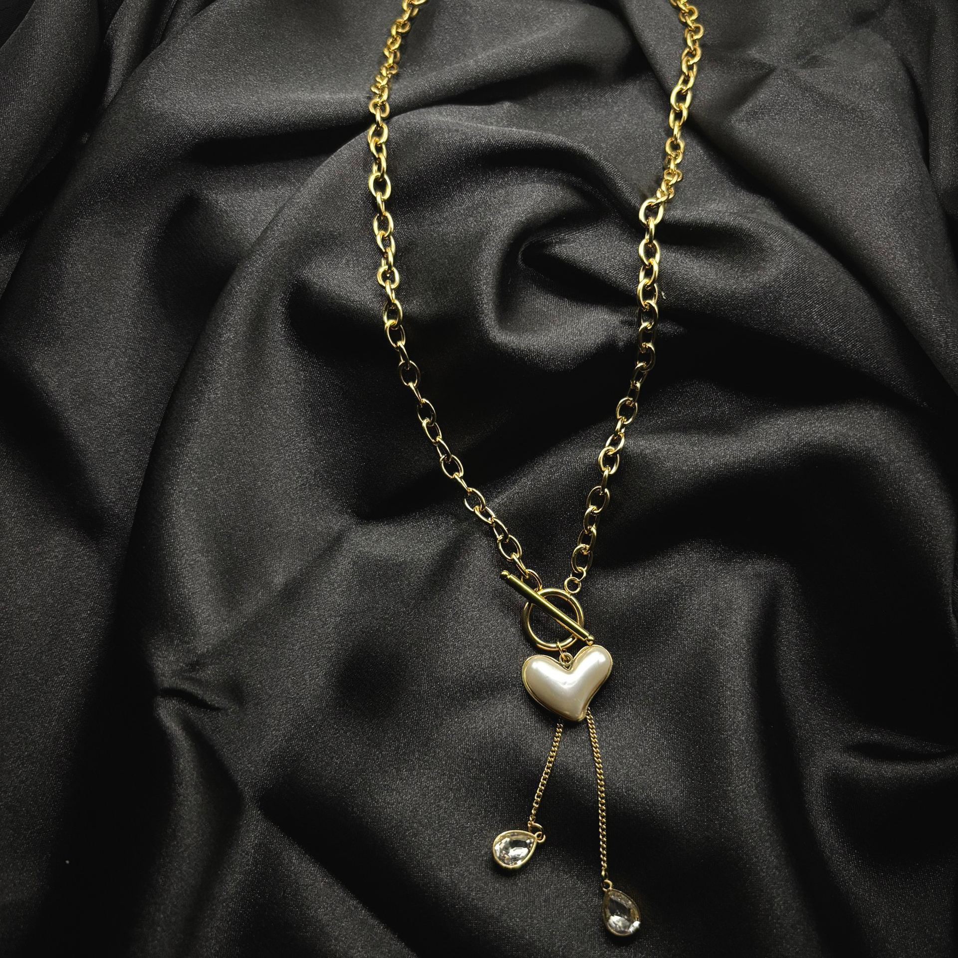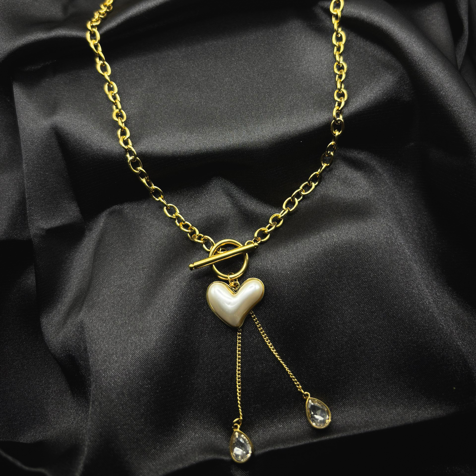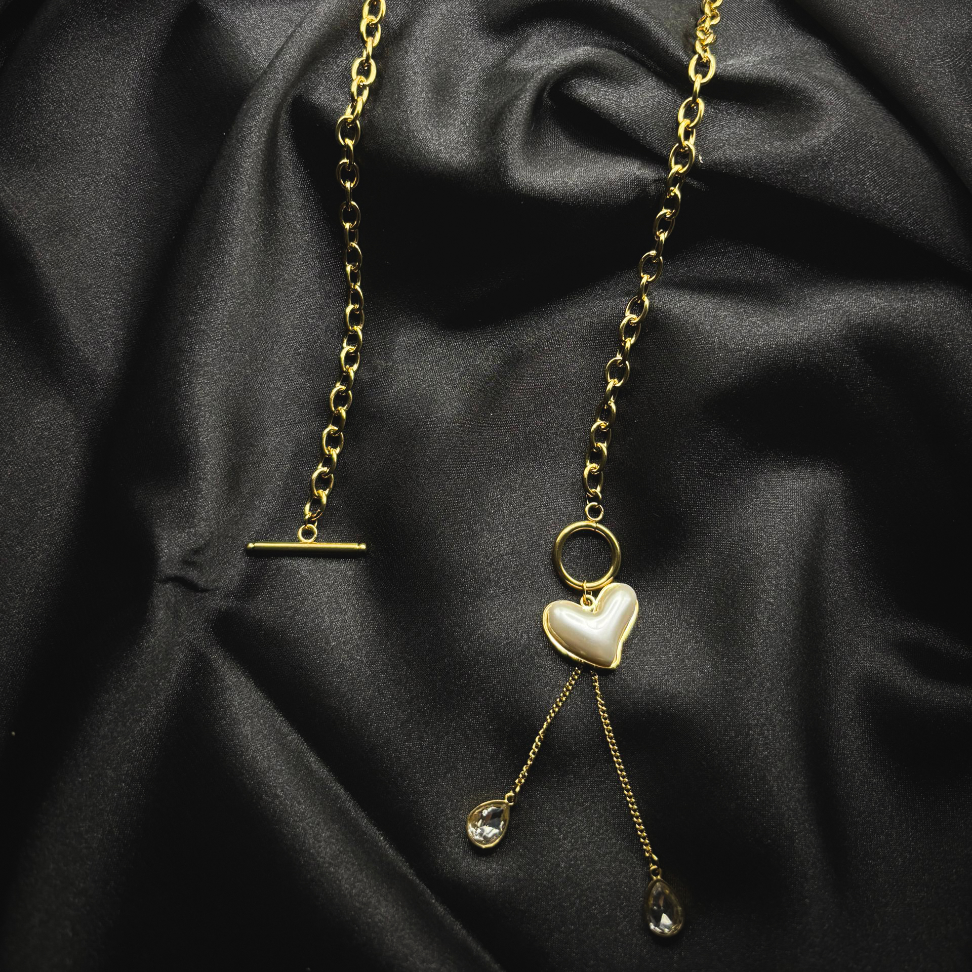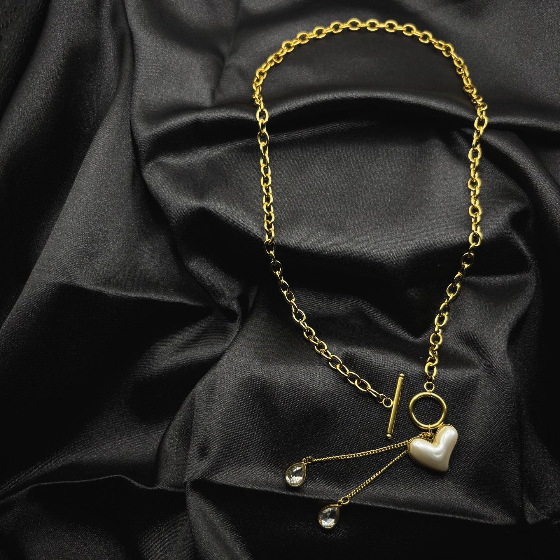 Chaîne médaillons anneaux cœur + diamants en acier inoxydable