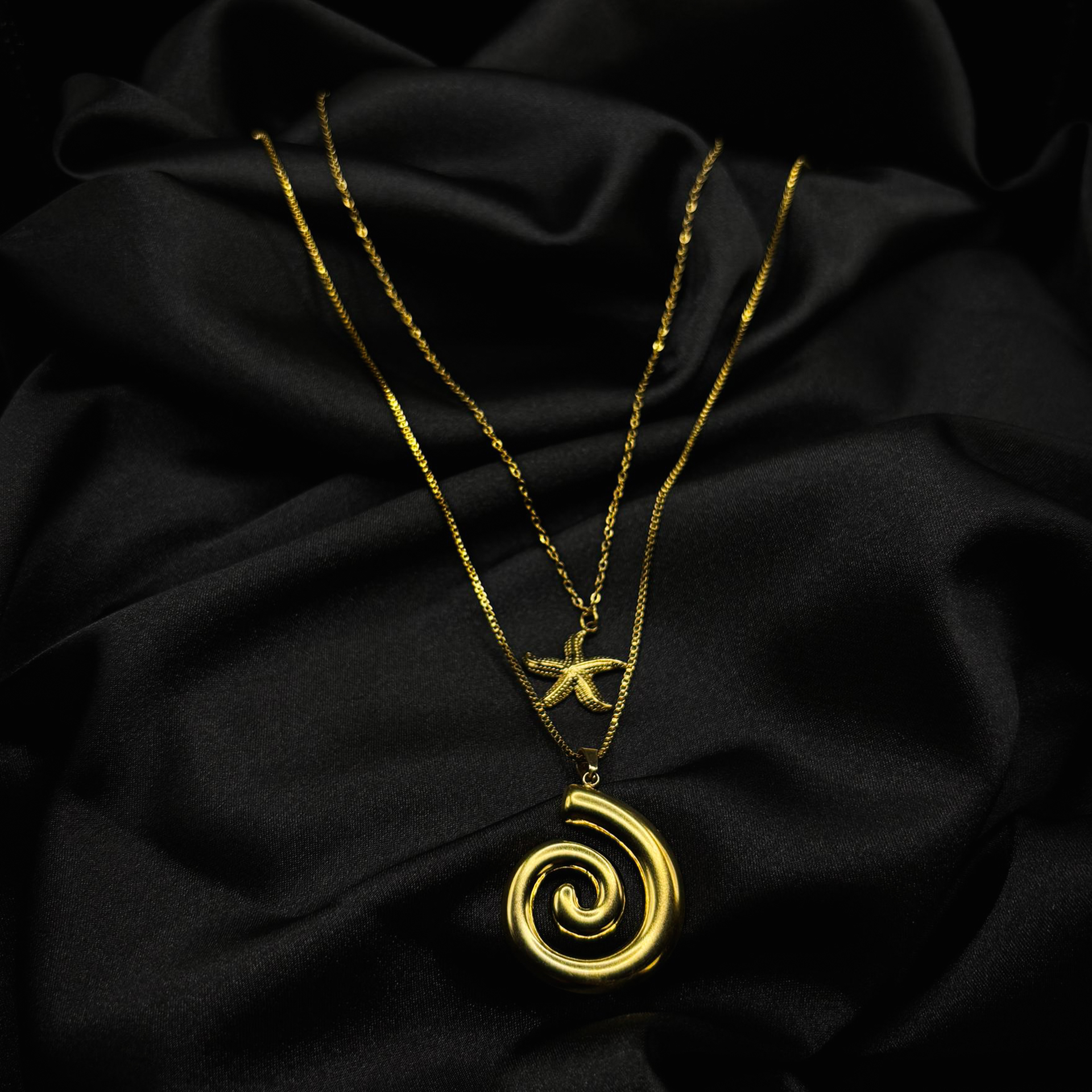 Ensemble chaînes à étoile de mer et coquilles d’escargots en acier inoxydable