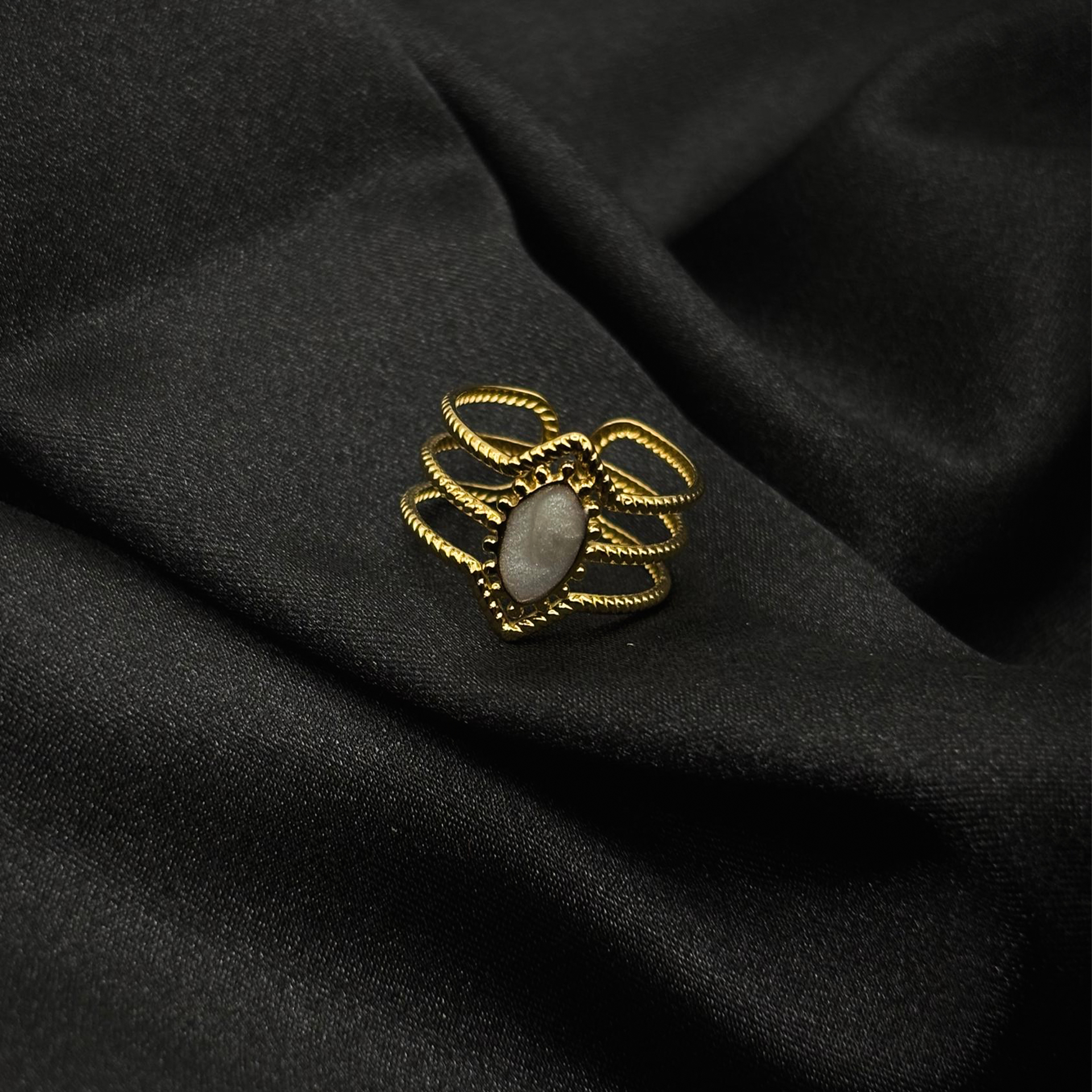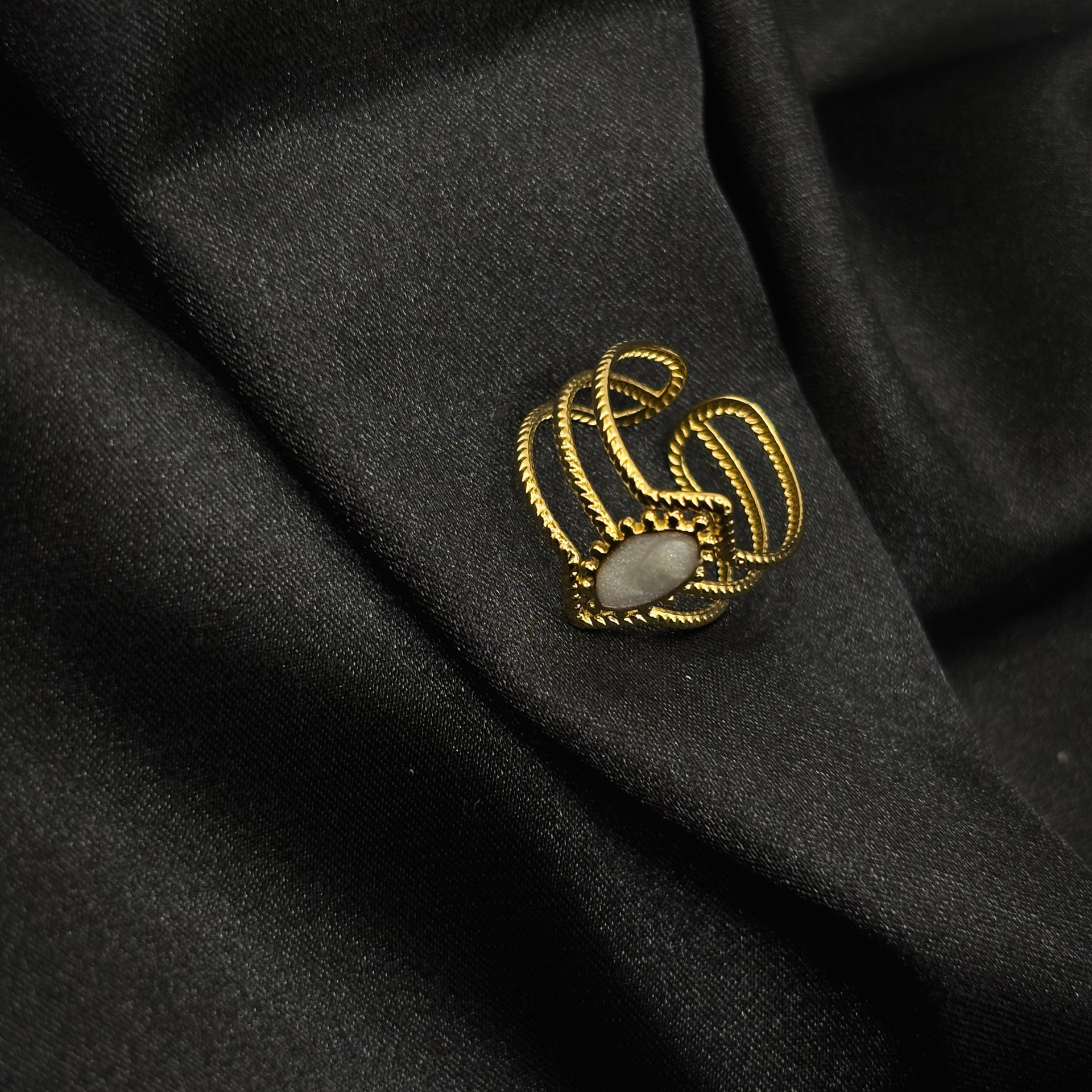 Design élégant : trois bagues assorties, chacune sublimée par un médaillon blanc chic et discret.