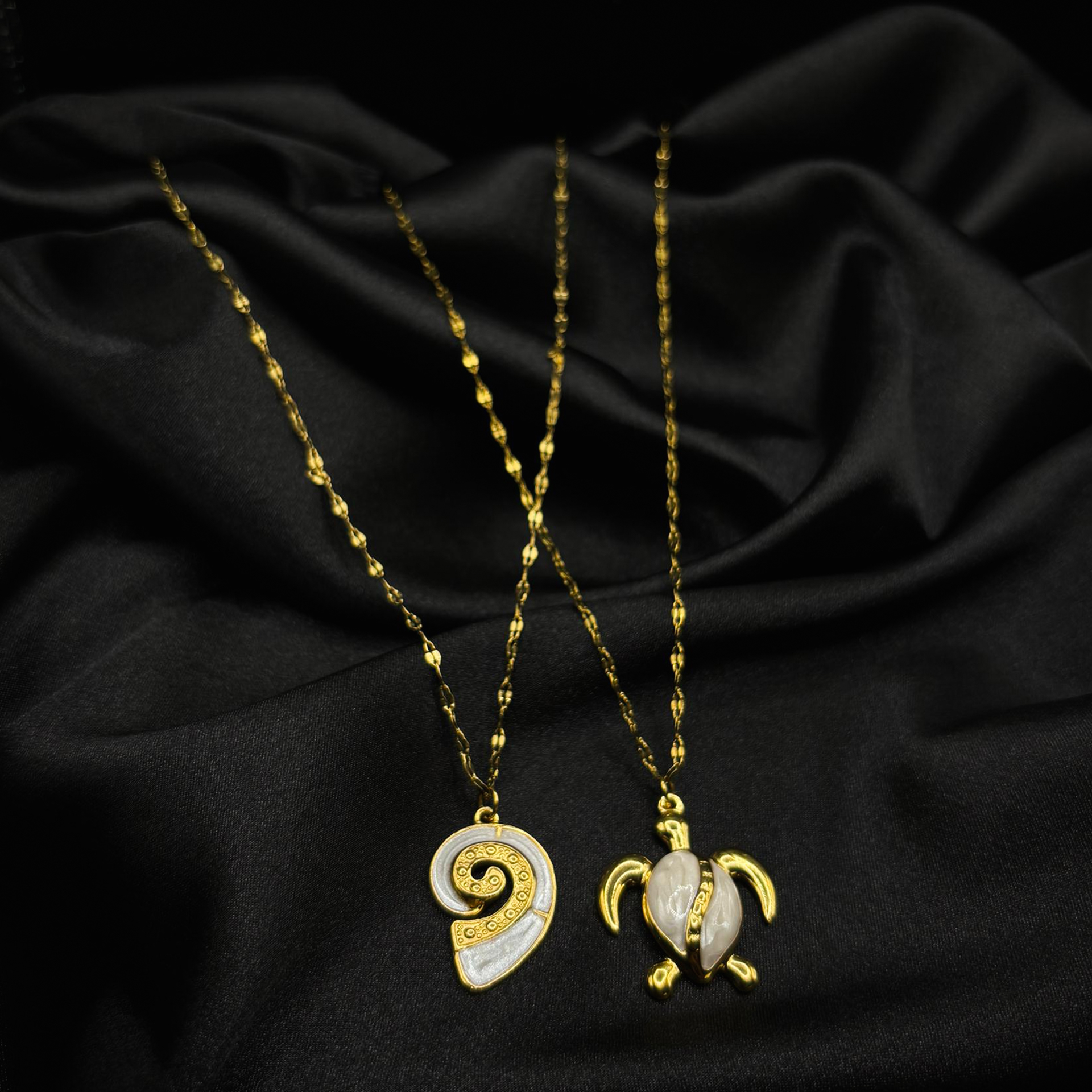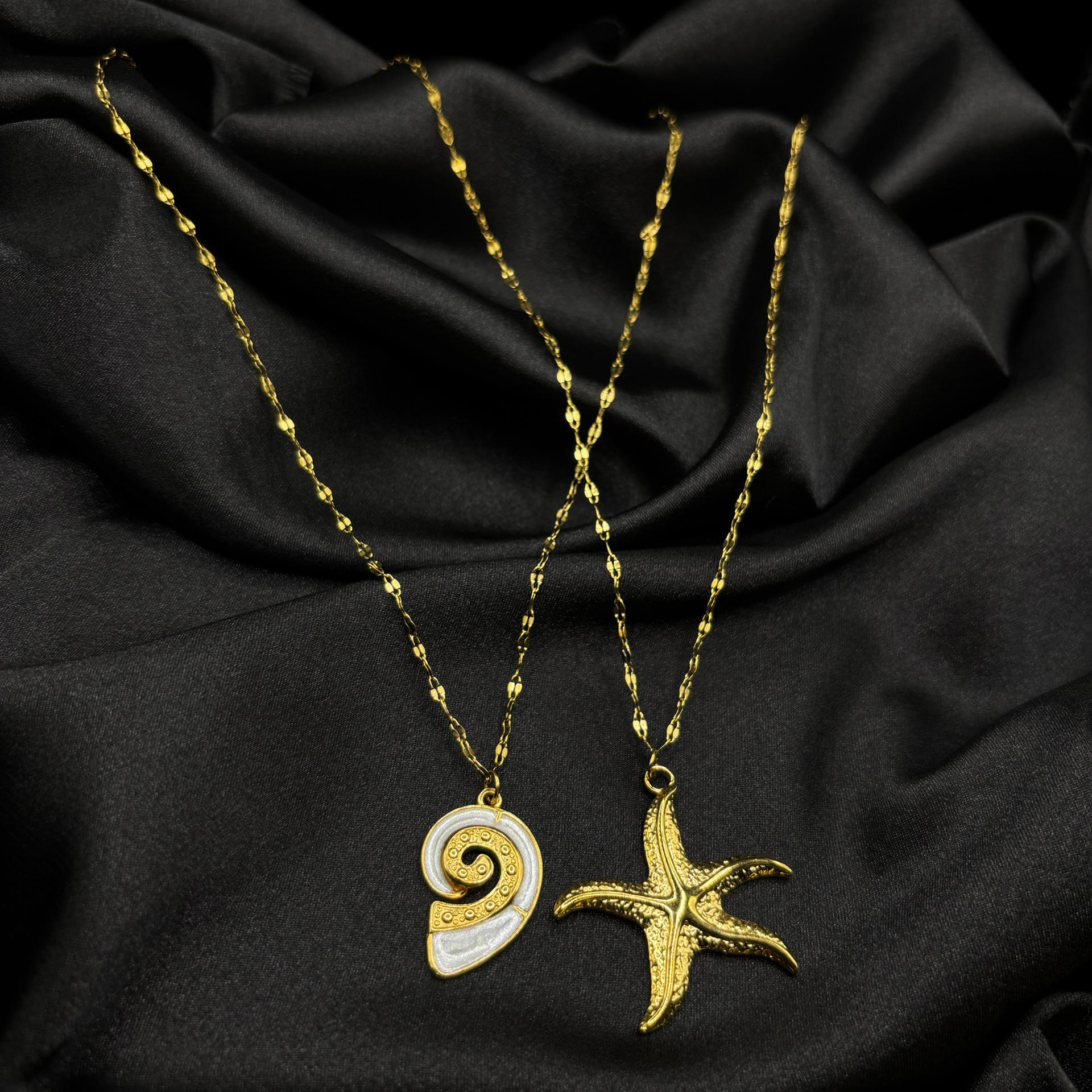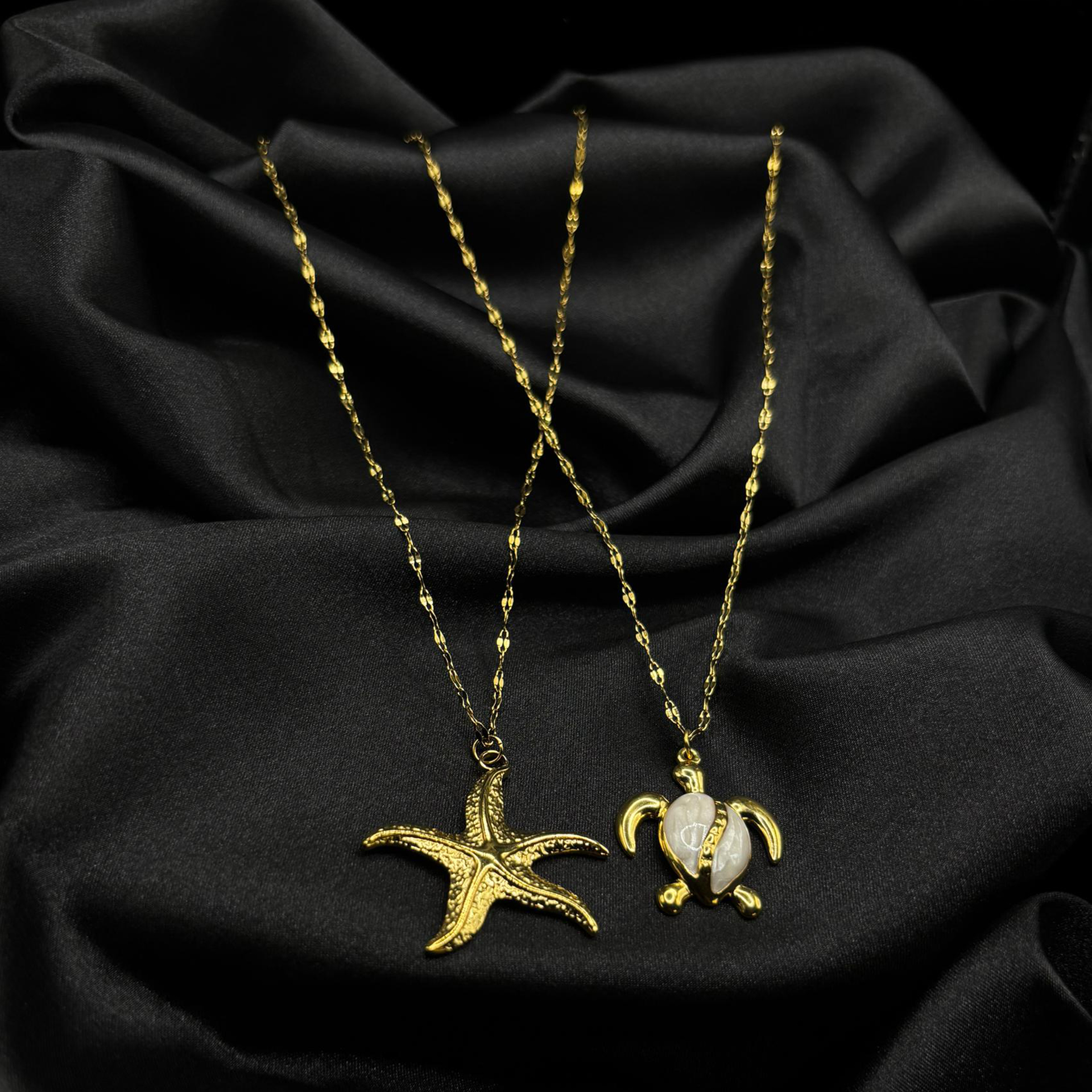 Trio chaînes médaillons coquillages + étoiles de mer + crabes en acier inoxydable